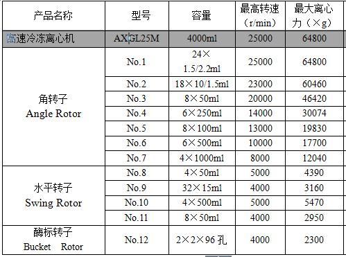 AXGL25M主机及转子表: